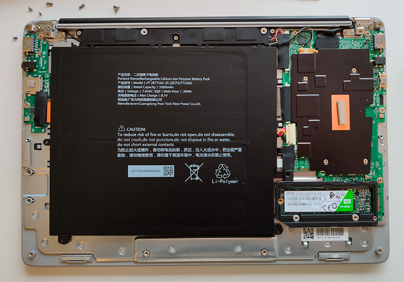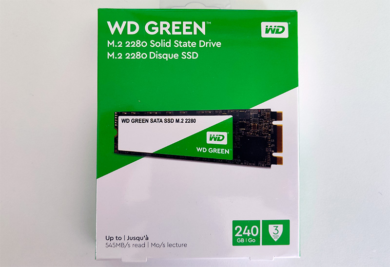 Память, конечно, лучше сразу расширить, благо SSD сейчас стоят очень недорого. Я посмотрел - по соотношению цены и объема сюда имеет смысл поставить 240-250 ГБ, так что я купил и установил вот такой WD Green. Он небыстрый (для SSD), но совсем недорогой - на "Яндекс.Маркете" его можно купить примерно за 2 тысячи рублей. То есть за дополнительные две тысячи вы на этом ноутбуке получаете системный диск 64 ГБ (вполне достаточно) и 240 ГБ под данные, игры, видео, музыку и так далее.