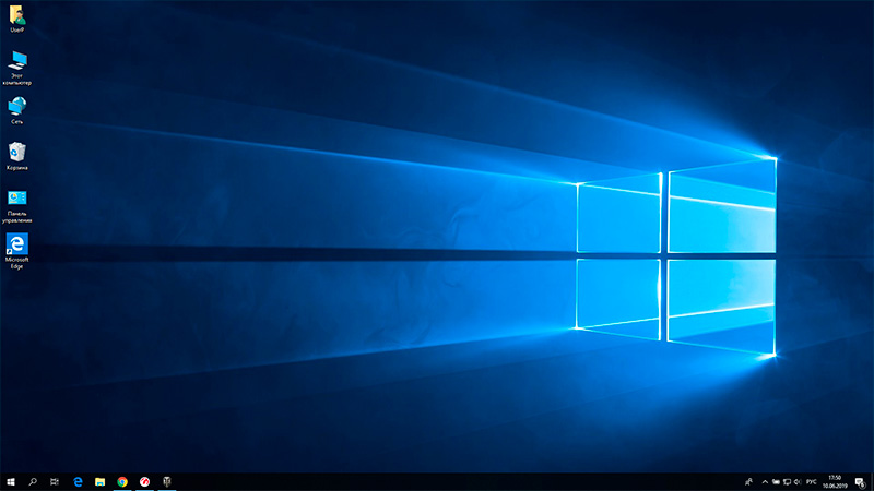По умолчанию система зачем-то выставляет масштабирование 150% (см. кадр выше), в режиме 100% десктоп выглядит вот так.