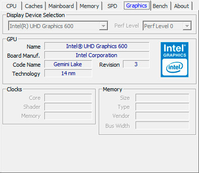 Графическая система: Intel UHD Graphics 600