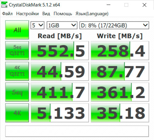 Тестирую SSD WD Green, который я туда поставил. Этот заметно шустрее по всем фронтам.