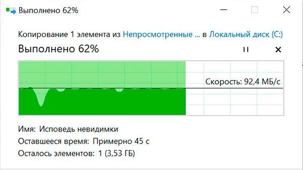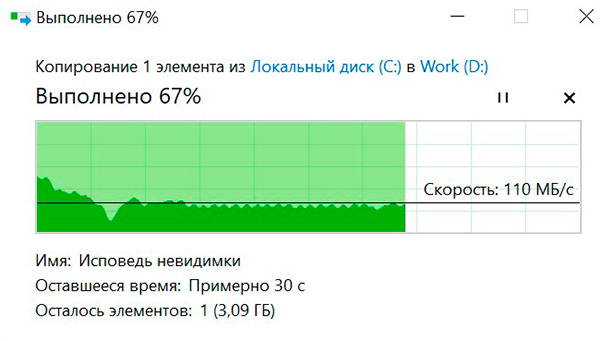 Этот же файл при копировании с системного диска на установленный второй SSD.