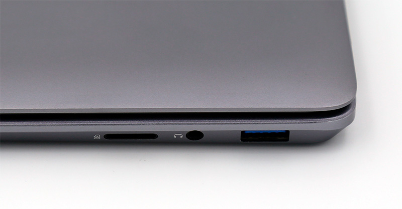 На правом торце - слот для карты памяти microSD, аудиовыход, порт USB 3.0.