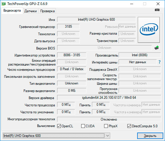 Не бывает, забыл отредактировать. Там Intel UHD Graphics 600. Спасибо, исправил.