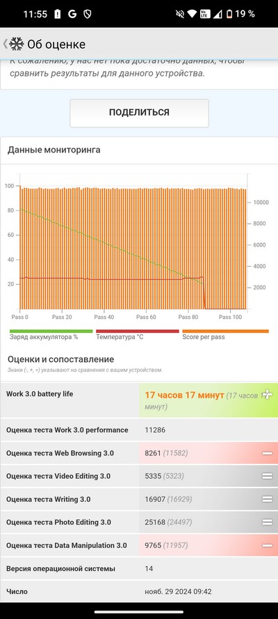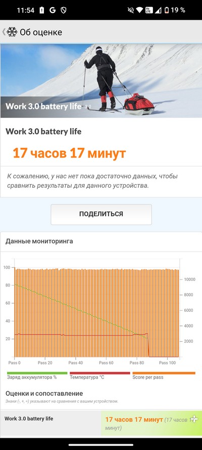 Синтетический тест PCMark - отличный результат, почти 17,5 часов.