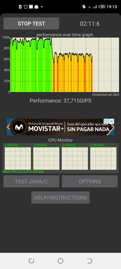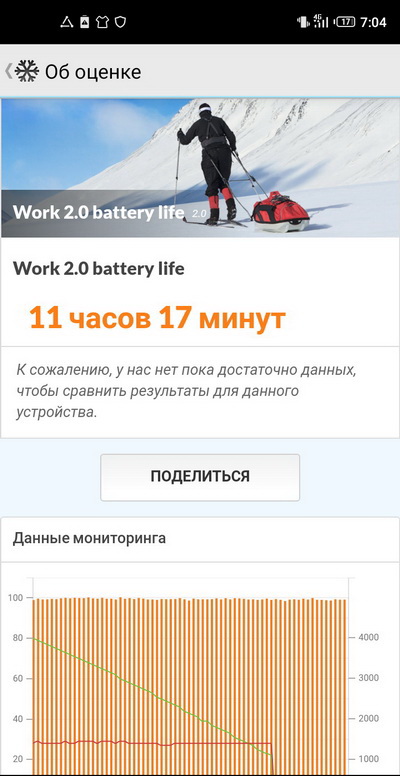 Погонял на троттлинг (падение производительности платформы под сильной нагрузкой). Да, где-то примерно через полторы минуты под сильной нагрузкой производительность смартфона начинает падать примерно до 60 процентов. О чем это говорит? Да на самом деле мало о чем. На таких смартфонах крайне редко используют очень сильно грузящие систему приложения, так что обычным пользователям с троттлингом вряд ли вообще придется столкнуться.