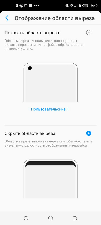 Область выреза (камеру) можно скрывать, выводя информационные данные на темном фоне.