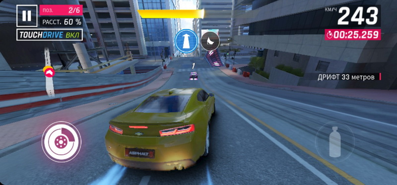 Платформа по мощности достаточно скромная. Asphalt 9 загружалась довольно медленно, но к игровому процессу претензий не было: на стандартных настройках графики все двигалось плавно и без рывков, играть было вполне комфортно.