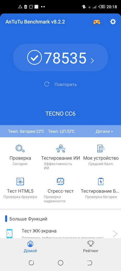 Каких-то проблем при работе с этим смартфоном за период тестирования я не заметил. Все работало четко и стабильно, оболочка HiOS не тормозит и выглядит симпатично. Несмотря на не слишком быстродейственную платформу, претензий по скорости работы у меня не было: плавность перерисовки экрана и скорость загрузки приложений были совершенно нормальными.