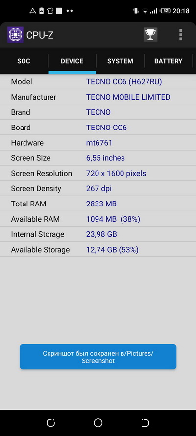Ну, да, совсем немного не дотягивает - потому что это вполне себе HD (720p), растянутое по вертикали (отсюда и "лишние" пиксели; маркетинговое обозначение такого разрешения - HD+). Ну и 8 ядер A53 (образца, замечу, 2014 года) в году 2020 смотрятся... свежо, конечно, но свежесть уже не вторая и даже не третья. Но вот ухитриться тротлить через полторы минуты на этих дохлых ядрах - это они абсолютные молодцы! До них так сумел отличиться только Qualcomm в процессоре SD615 (правда, было это аж в 2015 году, да кто же считает!) В общем, обычный китайский ужас, если судить по обзору.