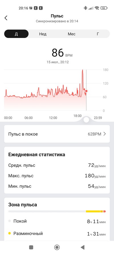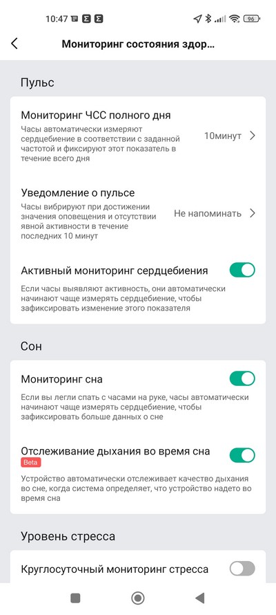 Уровень оксигенации тоже измерял нормально - все время показывал 97-99%, не падая до уже неприемлемых 94-95%, что наблюдалось у некоторых других часов. Постоянного мониторинга этого уровня здесь нет, но это и не нужно.
