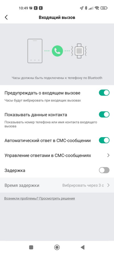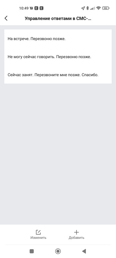 Настройки быстрых ответов для SMS. (Замечу, что в часах такой возможности нет, так что непонятно, зачем это вообще здесь присутствует.)