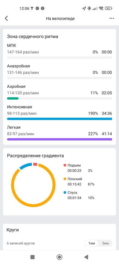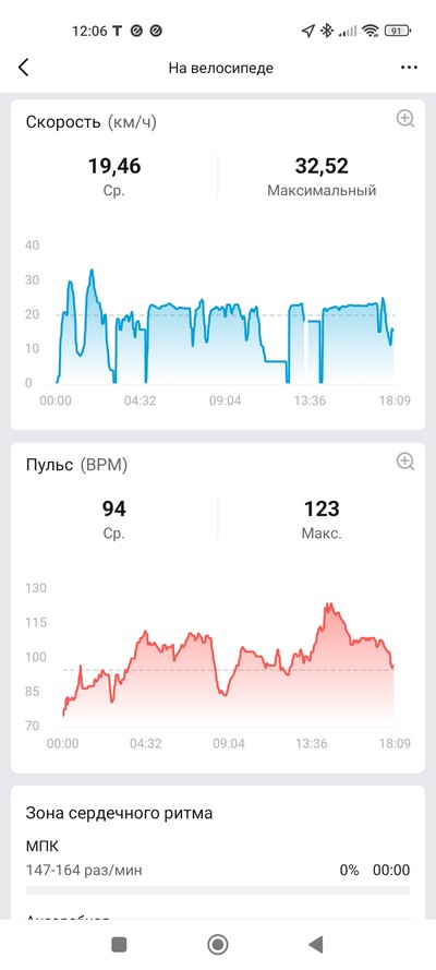 Отслеживание тренировки - езда на велосипеде. Пульс определялся вполне достоверно.