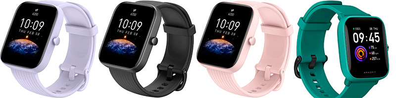 Цвета корпуса и ремешка: черный, лиловый, розовый, зеленый