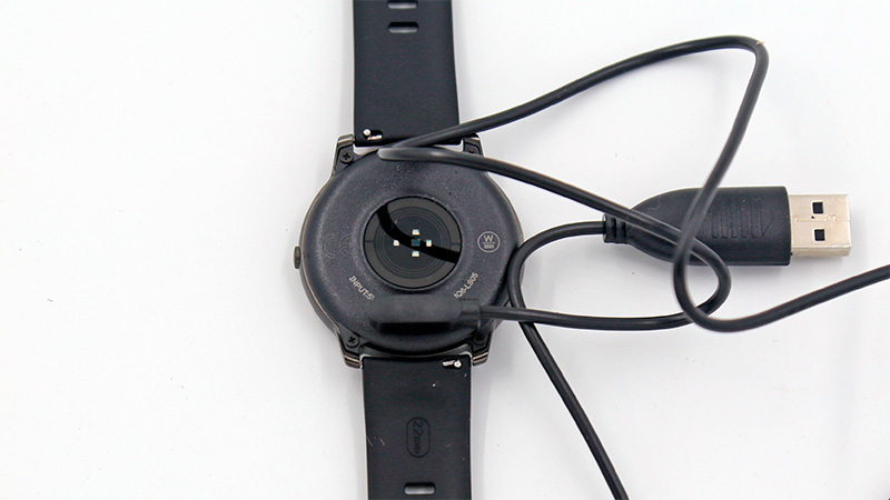 На нижней крышке размещены датчик сердечного пульса и контакты для зарядки.