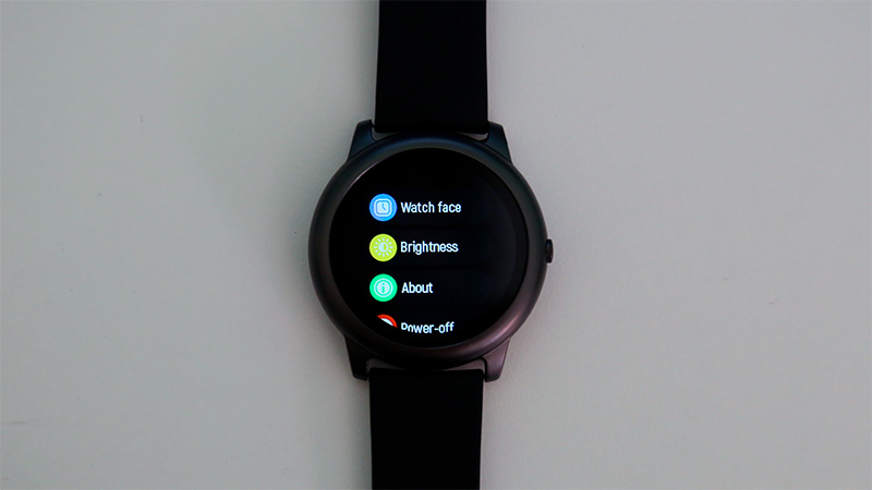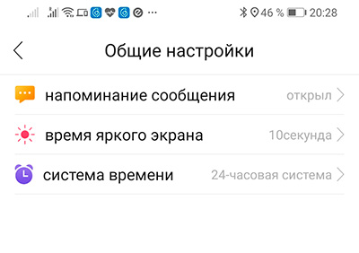 В настройках практически ничего нет: смена циферблата, яркость, об устройстве, выключить или сбросить.
