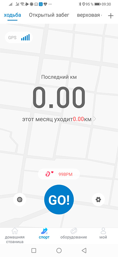 Ну и там есть еще закладка "Спорт", но это и вовсе какая-то профанация. Там три закладки: ходьба, открытый забег, верховая езда. С часами этот раздел, похоже, никак не связан, а если там запускаешь, например, ходьбу, то они просто со смартфона все фиксируют, причем очень и очень криво.
