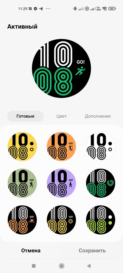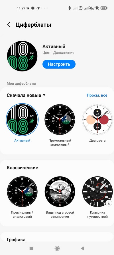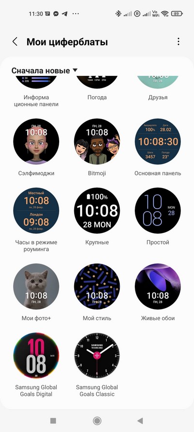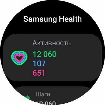 Galaxy Watch4 умеют делать скриншоты экрана (одновременное нажатие двух кнопок) и отправлять сохраненные скриншоты на смартфон. Так что я буду показывать именно скриншоты, а не фото.