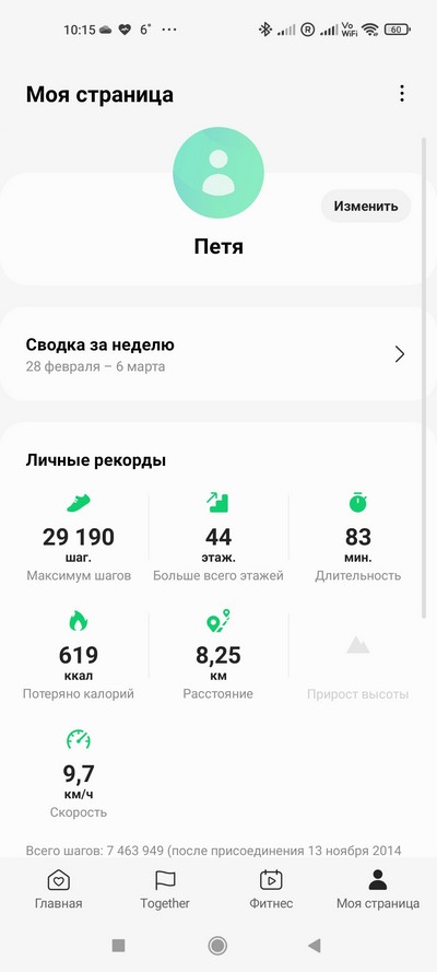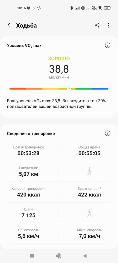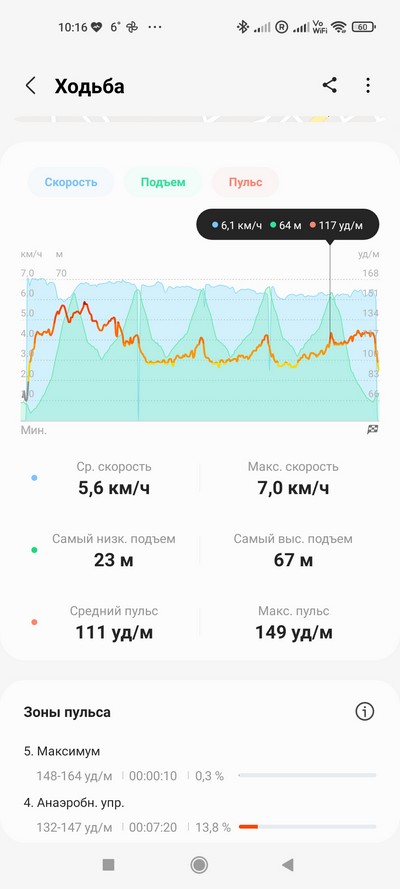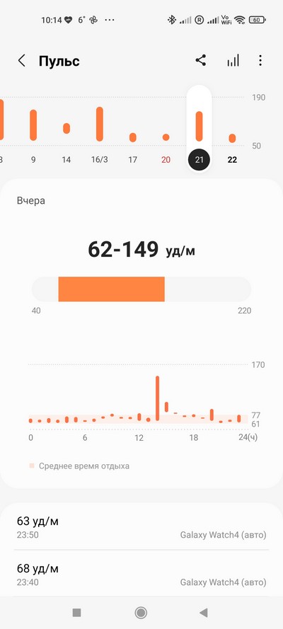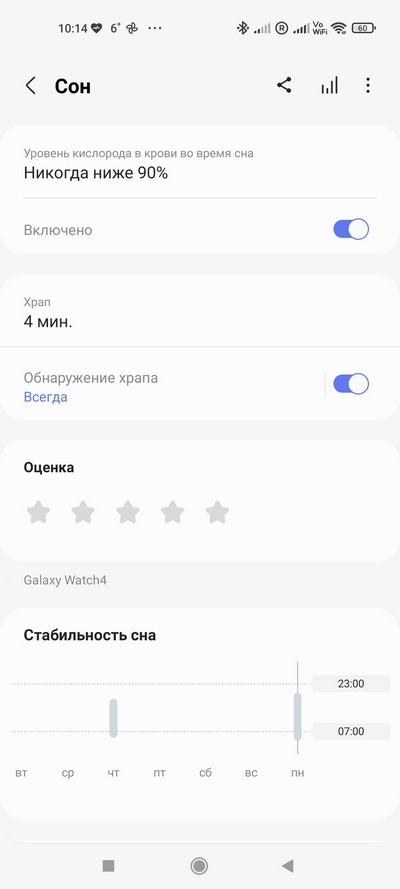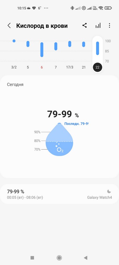 Теперь посмотрим, как измеренные данные выглядят в Samsung Health.