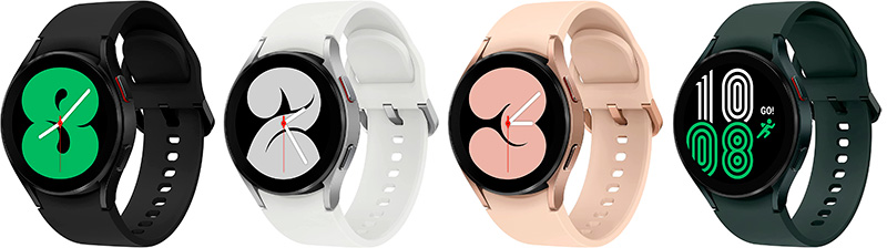 У этих часов есть несколько модификаций. Самые простые и недорогие - это Galaxy Watch4: они есть двух размеров - 40 мм (такой размер удобен для женщин) и 44 мм. 40-миллиметровая модификация имеет больше всего вариантов цветов корпуса и ремешков - вот они все.