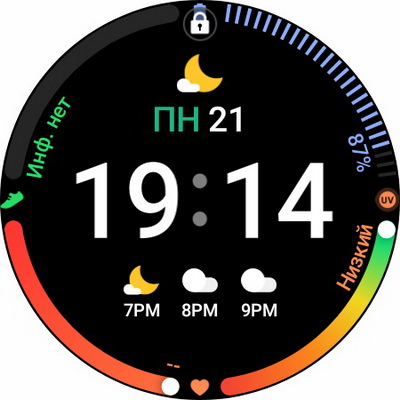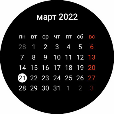 Циферблат (главный десктоп). При длинном нажатии на него появляется возможность смены циферблата и его настроек (большинство циферблатов настраиваются).