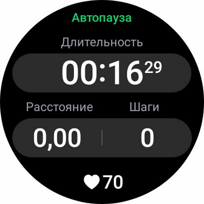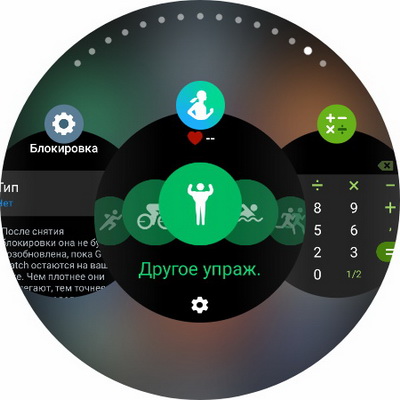 Wear OS - система многозадачная, так что в процессе тренировки вы в любой момент можете перейти к другому приложению, f-тренировка будет отслеживаться в фоне (при этом пиктограмма тренировки будет зеленой и тренировку, разумеется, можно будет вернуть на экран).