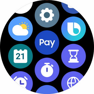 Верхняя кнопка. Короткое нажатие - никаких действий, если на экране циферблат, если же на экране какое-то приложение, то короткое нажатие - возврат к циферблату Длинное нажатие - меню выключения. Двойное нажатие - Samsung Health. На двойное нажатие через смартфон можно назначить вызов любого приложения, на длинное нажатие - только меню выключения или голосовой помощник Bixby.