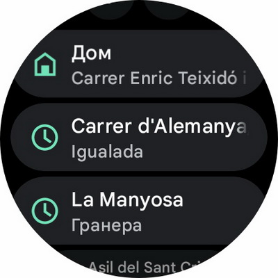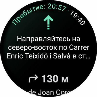 При запущенной на смартфоне навигации на часах выводятся текстовые подсказки.