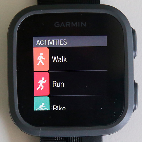 Активность - пять предустановленных видов: ходьба, бег, велосипед, бассейн, другие виды. Причем там с отслеживанием активностей все в порядке - Garmin все-таки: ходьба и бег делятся на в зале и на улице, отслеживаются круги, делаются предупреждения и так далее.