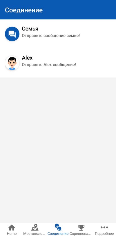 Связь - список контактов, которым можно отправлять текстовые и голосовые сообщения, отправка местоположения.