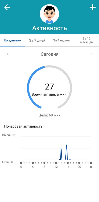 Главная страница, где перечислены все члены семьи. По каждому из них можно посмотреть активность за сегодня и за период.