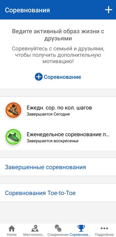 Свайп влево-вправо - сообщения, активность, шаги, награды, соревнования, статистика общей активности, погода.