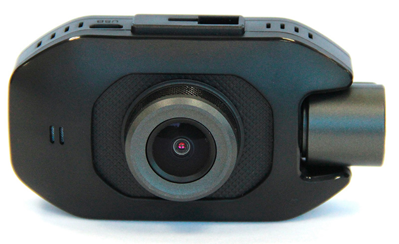 Достаточно типовой внешний вид для видеорегистраторов этого производителя: вытянутый корпус, по центру которого располагается объектив. Но тут обращает на себя внимание цилиндр в торце - это вторая салонная камера - особенность данной конкретной модели.