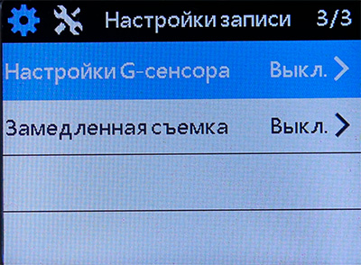Настройка чувствительности датчика удара и включение таймлапса: 1 с, 5 с и 30 с. Таймлапс нужен для случаев, когда требуется полная запись поездки (например, транспортировка груза) и не нужна полная видеозапись. Даже если выбирать съемку кадр каждую секунду, то из внимания камеры не ускользнет ничего, а места для записи потребуется в 30 раз меньше.