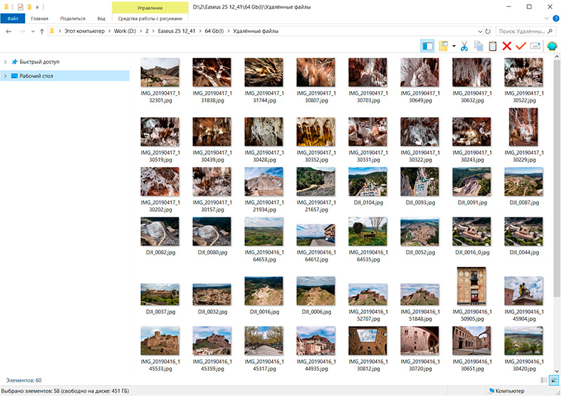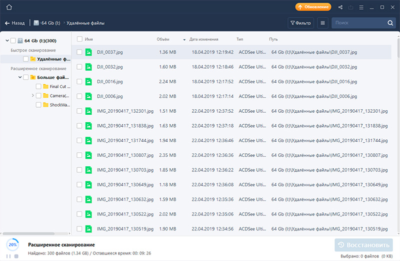 А средствами этой программы? Давайте откроем в ней эту флешку. При быстром сканировании в разделе "Удаленные файлы" нам выдают эти фотографии.