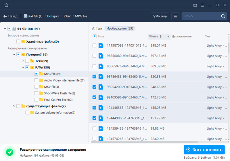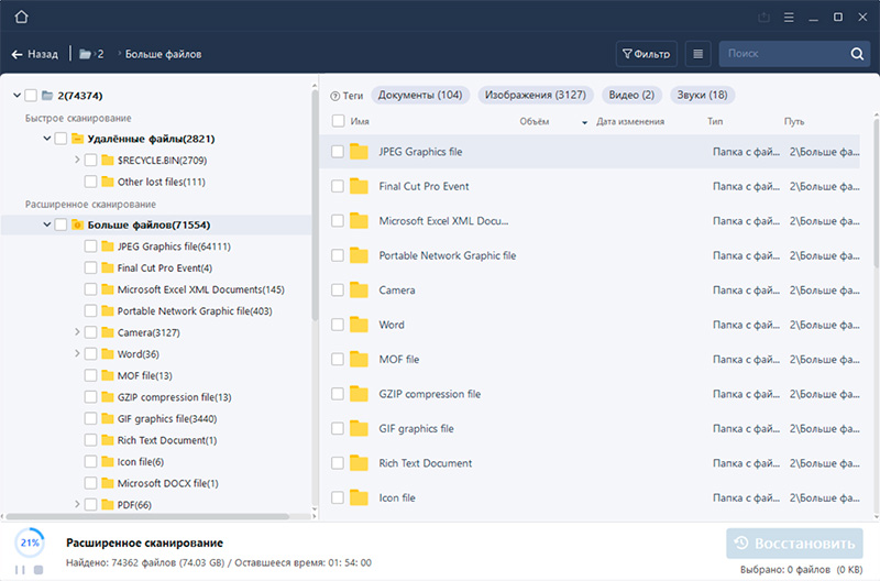 Программа там за пару минут сканирования обнаружила под сотню тысяч файлов, которые можно было попытаться восстановить.