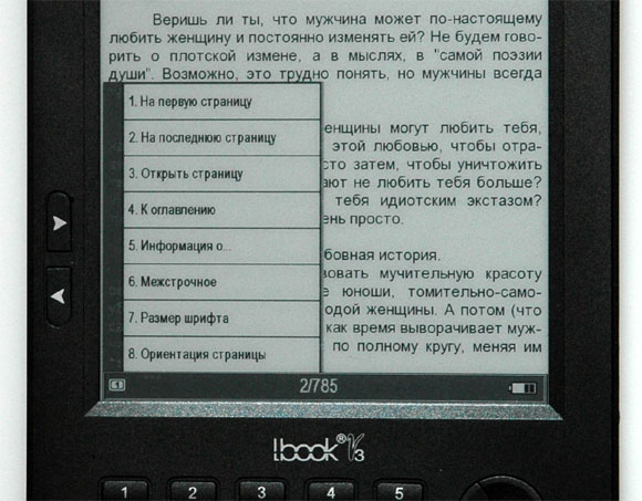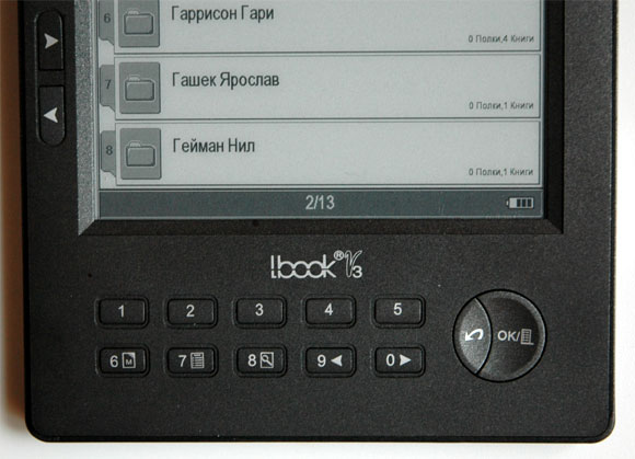 Нижний ряд цифровых клавиш при чтении используется для вызова различных функций: постановки закладки (поддерживается до пяти), вызова оглавления, смены вида шрифта, листания назад, листания вперед. Верхние пять клавиш вызывают переход к соответствующим пяти закладкам, если они установлены.