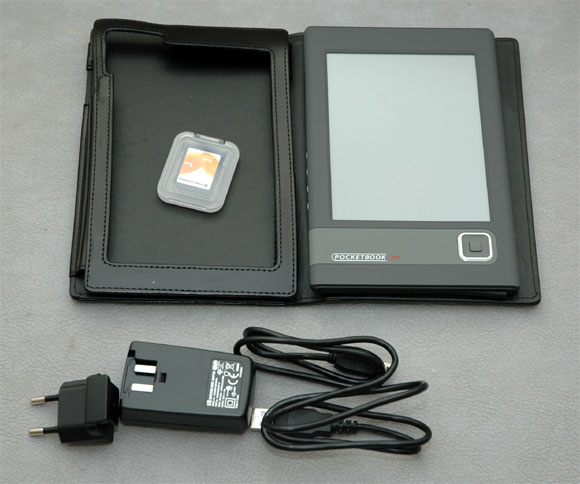 Комплектация у Pocketbook 301 практически такая же, как у LBook V3: устройство, чехол-обложка, кабель USB-miniUSB, электрический адаптер, гигабайтная SD-карточка, руководство пользователя.