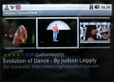 Лидирующие ролики по разным категориям и просмотр выбранных роликов.