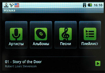 Сортировка загруженных аудиороликов по исполнителям, альбомам, композициям и плей-листам.