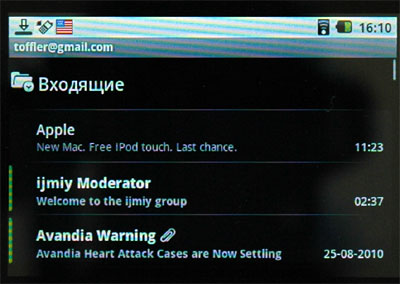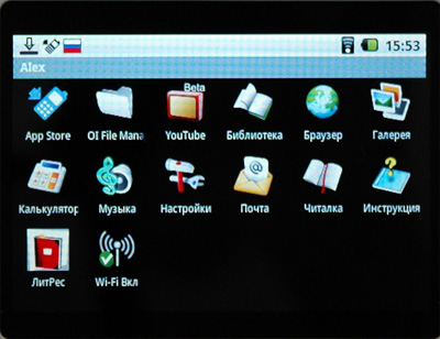 Там установлена урезанная версия операционной системы Android 1,5. Стартовый экран после включения появляется примерно через минуту.