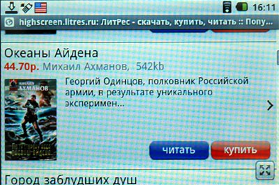Вся же остальная функциональность тут совершенно не нужна. Не получится купить Highscreen Alex вместо отдельного ридера и отдельного коммуникатора на Android. Потому что он и как ридер обладает достаточно ограниченной функциональностью (настроек текста почти нет) и слишком громоздок из-за второго экрана, и как коммуникатор снабжен более чем ограниченной функциональностью по сравнению с любым другим наладонником на Android.