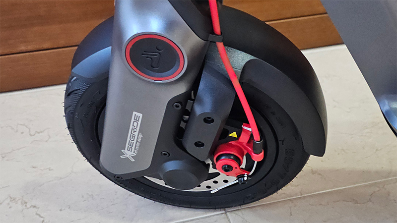 • Передняя гидравлическая и задняя эластомерная подвеска для комфортной езды, а также 10-дюймовые бескамерные бесшумные колеса с гелевым слоем.