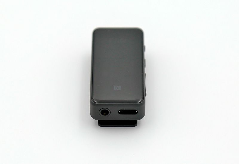 Под стеклом в нижней части - значок NFC, в верхней - световой индикатор, который показывает режим сопряжения, подключение и необходимость зарядить аккумулятор. В процессе воспроизведения он также демонстрирует, по какому кодеку идет передача: при воспроизведении SBC он мигает синим, AAC - голубым, LDAC - белым, LHDC (HWA) - зеленым, aptX и aptX LL - фиолетовым и, наконец, при воспроизведении aptX HD он мигает желтым.