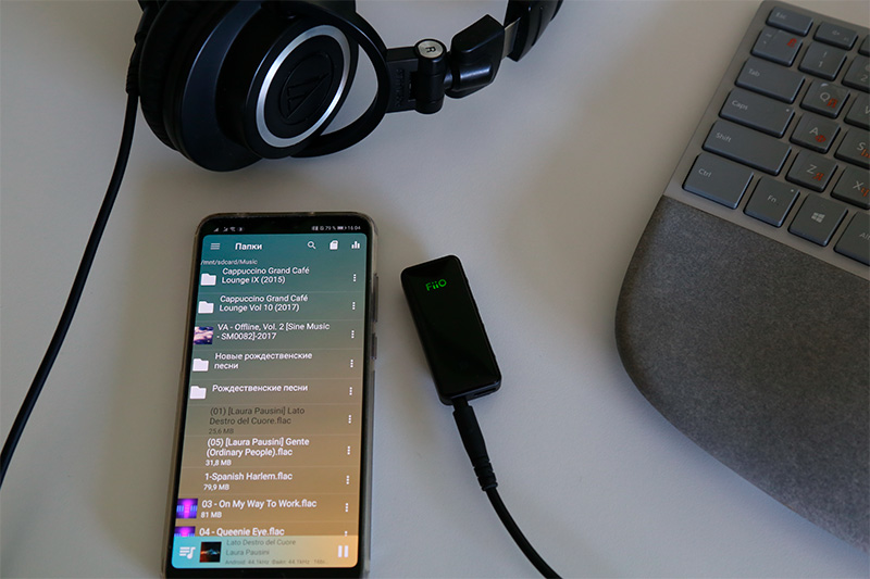 Я погонял устройство с моими полноразмерными 38-омными мониторными наушниками Audio-Technica ATH-M50x - по качеству и детализации возникает полное ощущение, что ты слушаешь звук по проводу с приличного плеера - того же Fiio X3iii или Hidizs AP100. Причем, так как начиная с восьмой версии Android набор беспроводных кодеков поддерживается на уровне самой системы, вам уже будет совершенно без разницы, какого качества звук у вас на смартфоне, особенно если использовать программу-плеер вроде USB Audio Player, которая снимает ограничения и перекодировки самого Android.