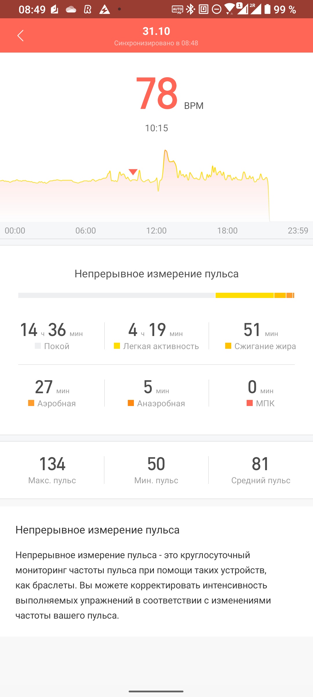 При этом нужно понимать, что оптический датчик Гармина тоже может врать, для точности нужно использовать нагрудный пульсометр. Если же говорить о занятиях спортом (где пульс имеет огромное значение) и задач подсчета калорий, то, конечно, полезность Ми Бенда очень низкая.