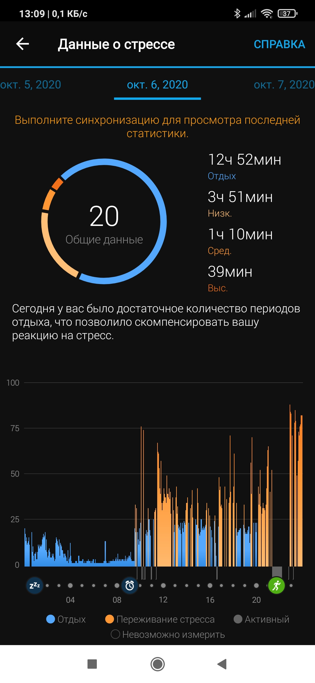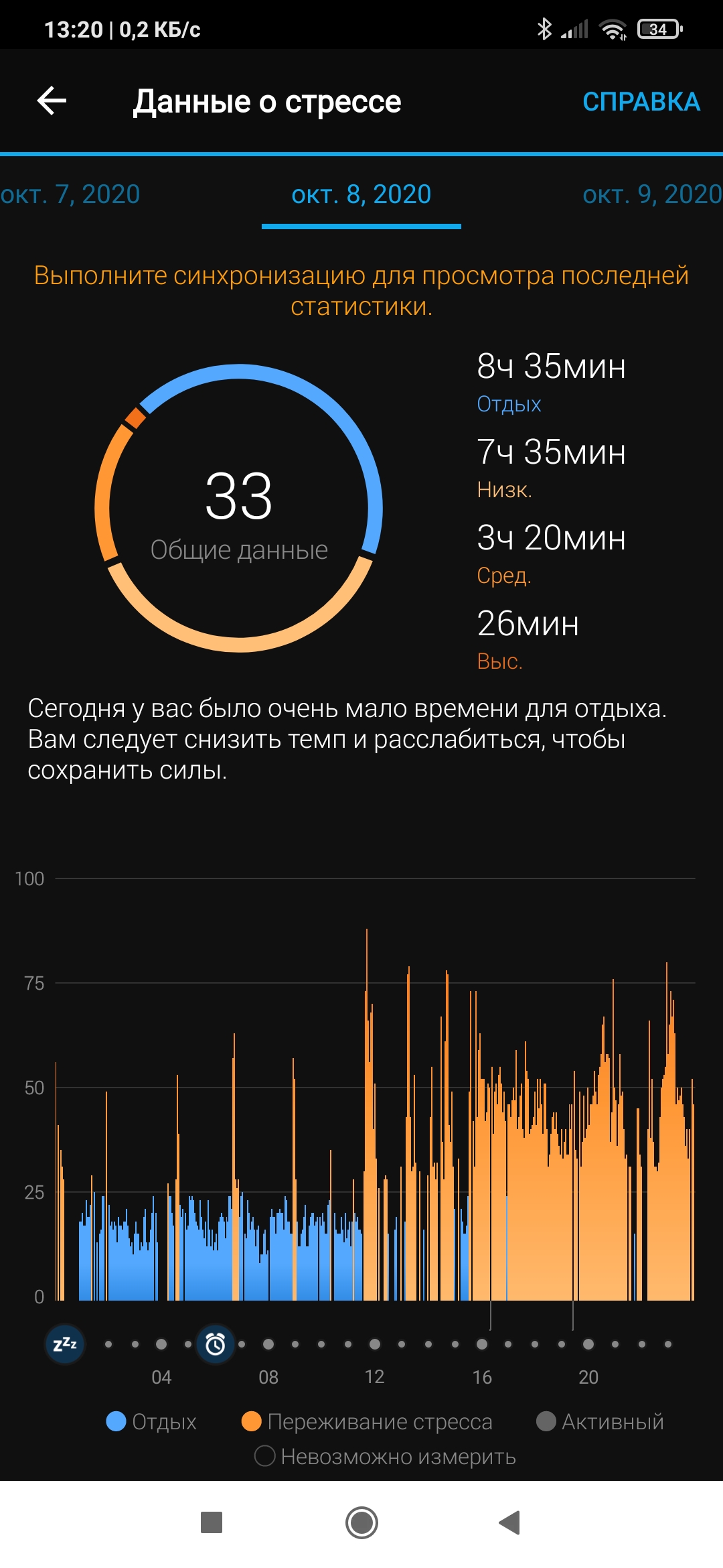 P.S. Кстати, всплески стресса на самой первой картинке (до болезни) в районе 12 и после 16 часов - это две чашки кофе.