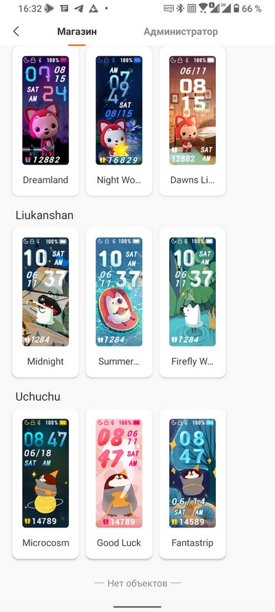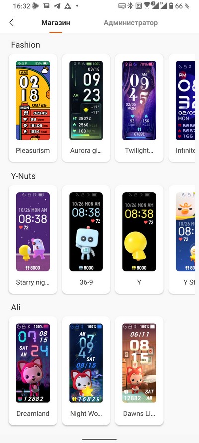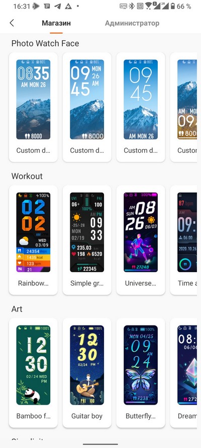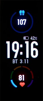 Циферблат, как обычно, меняется длинным нажатием по центру экрана. В памяти браслета циферблатов всего 4, однако через приложение вы можете заменить их на любые другие 4 циферблата.