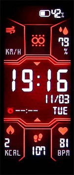 Дисплей: 1,1", 296 х 126, AMOLED, цветной, сенсорный, закаленное стекло 2.5D