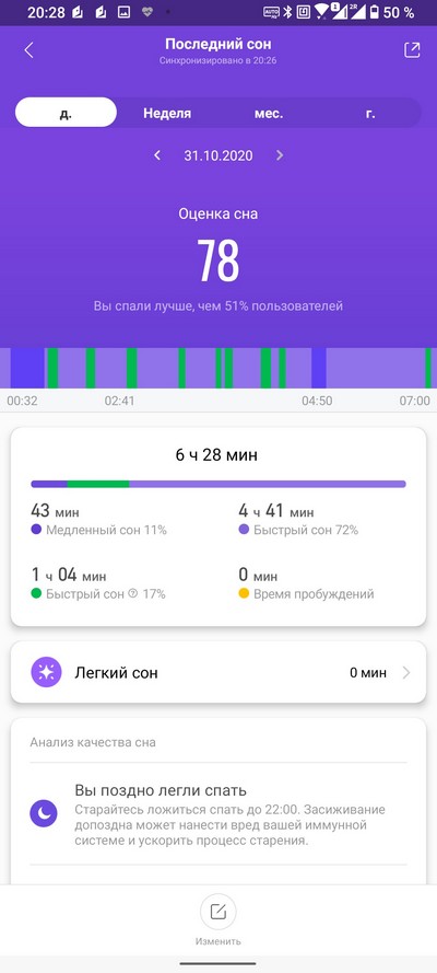 Отслеживание сна - хуже, чем у Huawei: иногда промахиваются, не всегда четко определяют пробуждение и засыпание.
