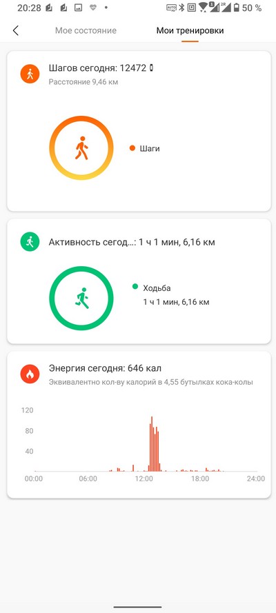 Впрочем, мне сейчас пришла в голову мысль, что чем выше общий расход калорий, тем меньше % погрешности. Так как у меня тренировка добавляет каждый день 500-800 калорий (это плюс 35% к среднему дневному потреблению), то погрешность может быть и не такой явной. Но мне для моих целей хватает. Вижу, что сжег калорий больше, чем обычно, понимаю, что нужно срочно зайти в Кинг за бургером, чтобы чувствовать себя хорошо 😉